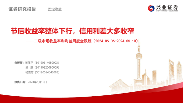 【兴业证券】【20240512】二级市场收益率和利差全跟踪:节后收益率整体下行,信用利差大多收窄-49页