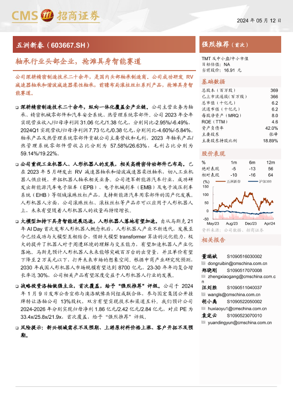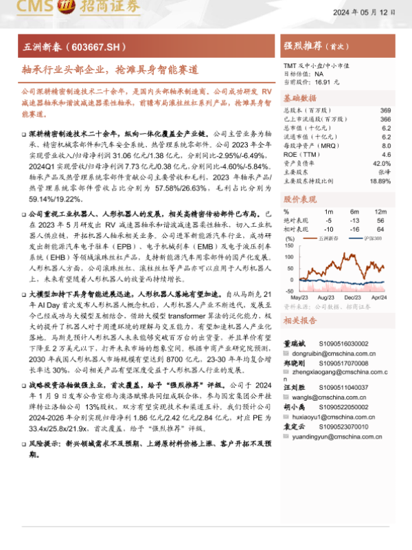 【海通证券】【20240512】五洲新春(603667)轴承行业头部企业,抢滩具身智能赛道-31页