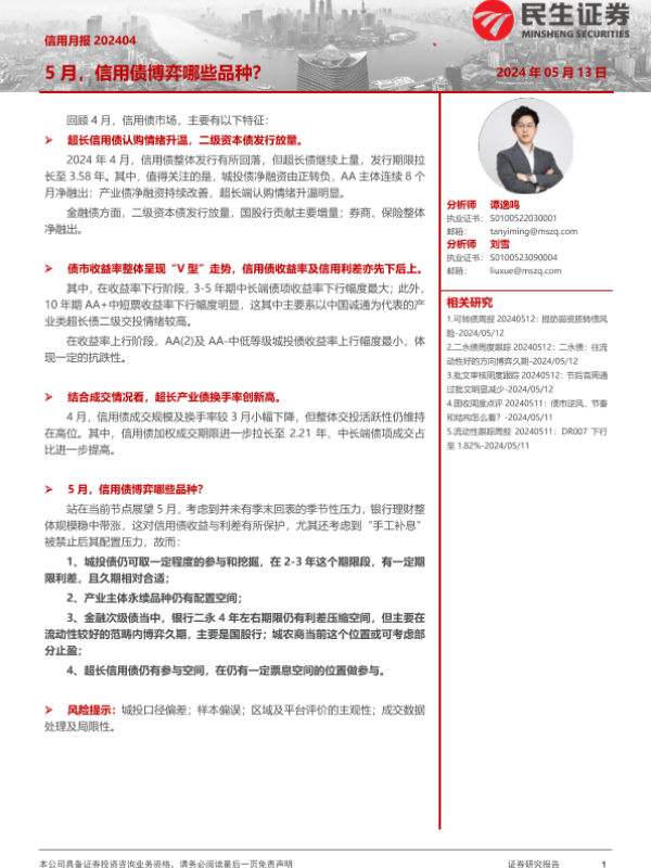 【民生证券】【20240513】信用月报202404:5月,信用债博弈哪些品种?-30页