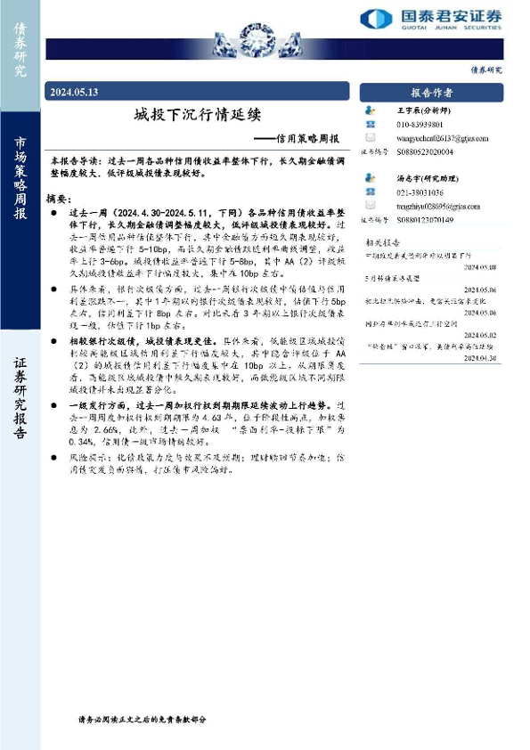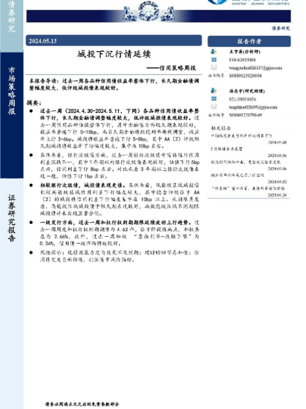 【国泰君安证券】【20240513】信用策略:城投下沉行情延续-11页