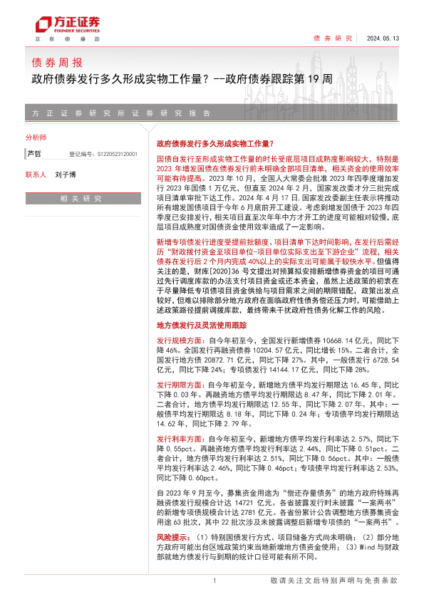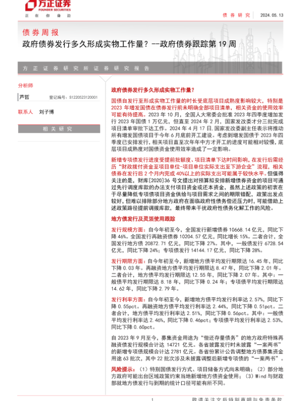 【方正证券】【20240513】政府债券发行多久形成实物工作量?-政府债券跟踪第19周-18页