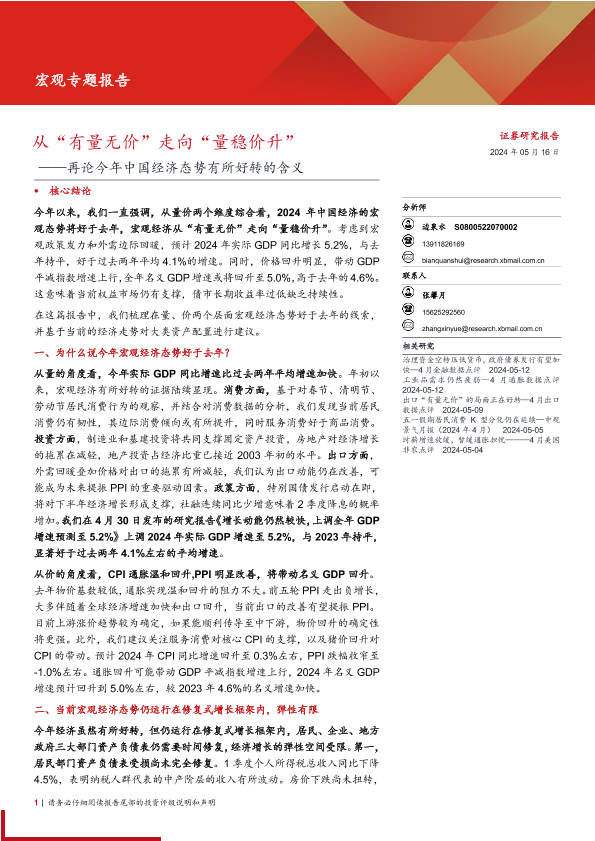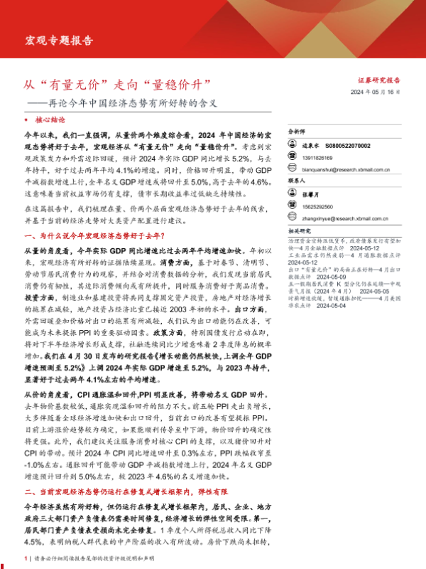 【西部证券】【20240516】再论今年中国经济态势有所好转的含义:从“有量无价”走向“量稳价升”-17页