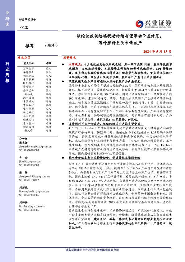 【兴业证券】【20240513】涤纶长丝供给端扰动持续有望带动价差修复,海外颜料巨头申请破产-20页