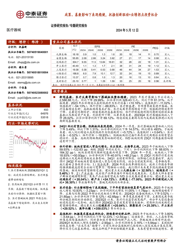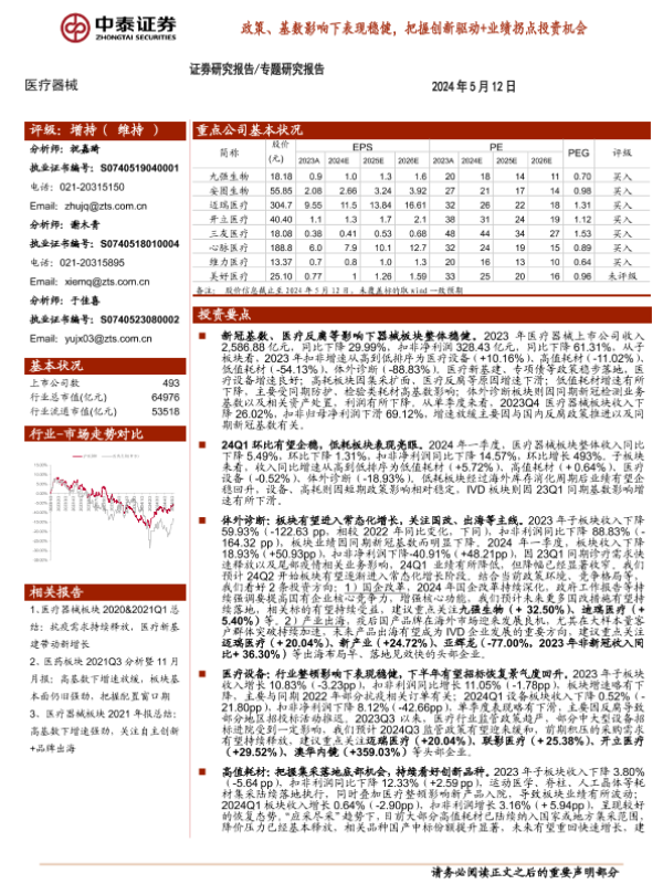 【中泰证券】【20240512】医疗器械行业:政策、基数影响下表现稳健,把握创新驱动+业绩拐点投资机会-15页