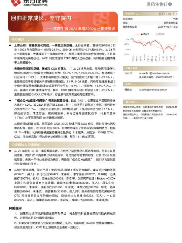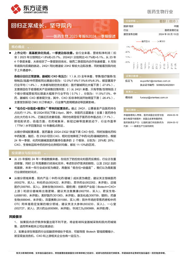 【东方证券】【20240515】医药生物行业2023年报&2024一季报综述:回归正常成长,坚守院内-10页