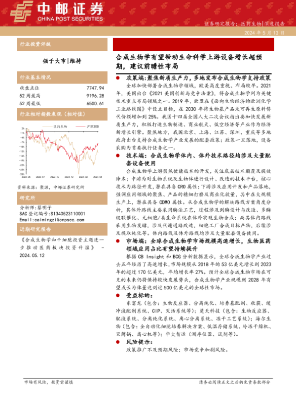 【中邮证券】【20240513】医药生物行业:合成生物学有望带动生命科学上游设备增长超预期,建议前瞻性布局-13页
