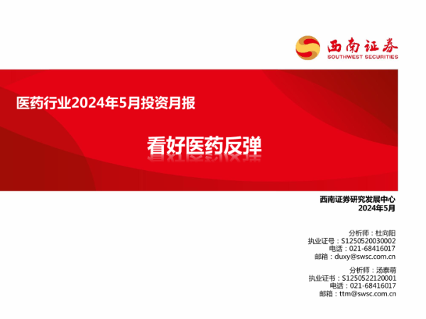 【西南证券】【20240514】医药行业2024年5月投资月报:看好医药反弹-92页