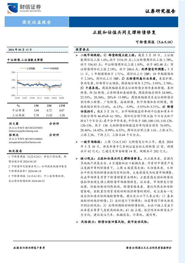 【财信证券】【20240513】可转债:正股和估值共同支撑转债修复-10页