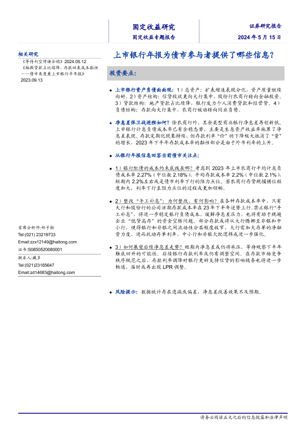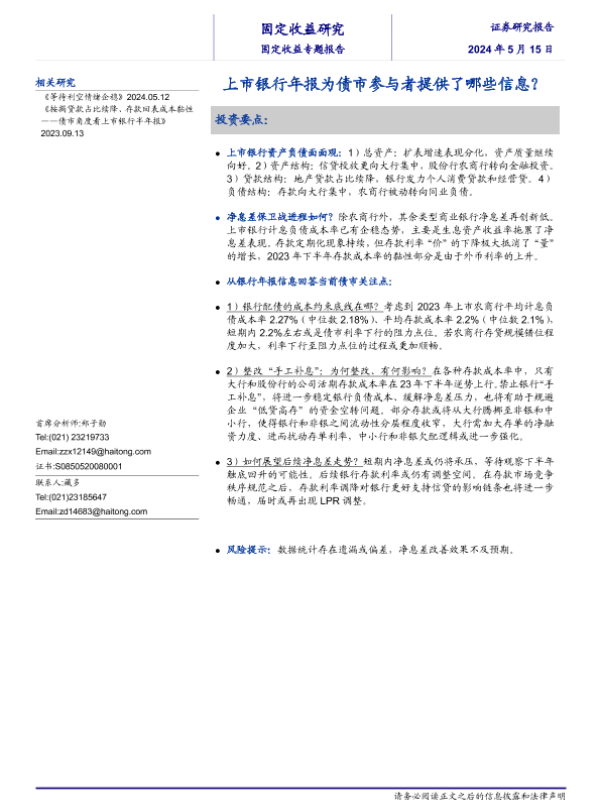 【海通证券】【20240515】固定收益研究:上市银行年报为债市参与者提供了哪些信息?-14页