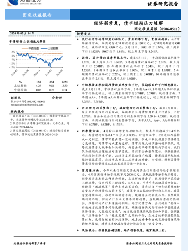 【财信证券】【20240514】固定收益:经济弱修复,债市短期压力缓解-10页