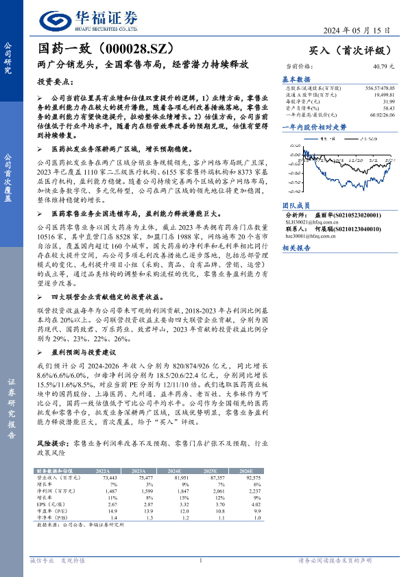 【华福证券】【20240515】国药一致(000028)两广分销龙头,全国零售布局,经营潜力持续释放-15页