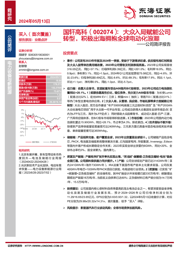 【东海证券】【20240513】国轩高科(002074):大众入局赋能公司转型,积极出海拥抱全球电动化浪潮——公司简评报告-16页