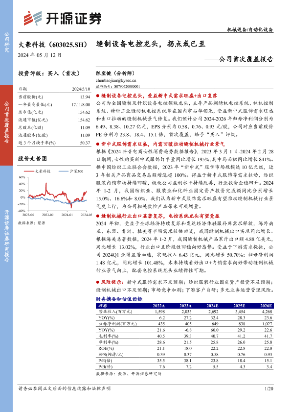 【开源证券】【20240512】大豪科技(603025)公司首次覆盖报告:缝制设备电控龙头,拐点或已至-20页