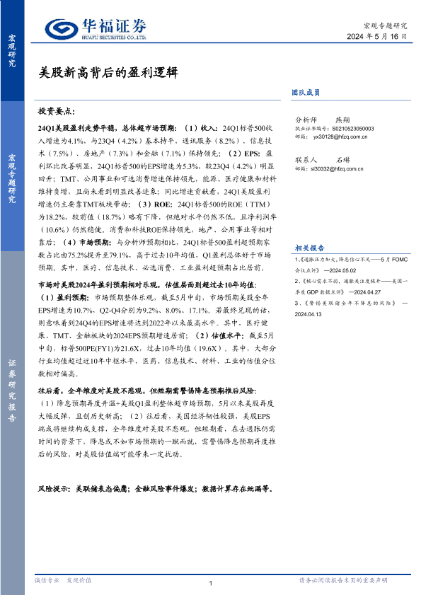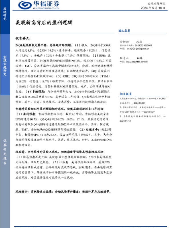 【华福证券】【20240516】宏观专题研究:美股新高背后的盈利逻辑-16页