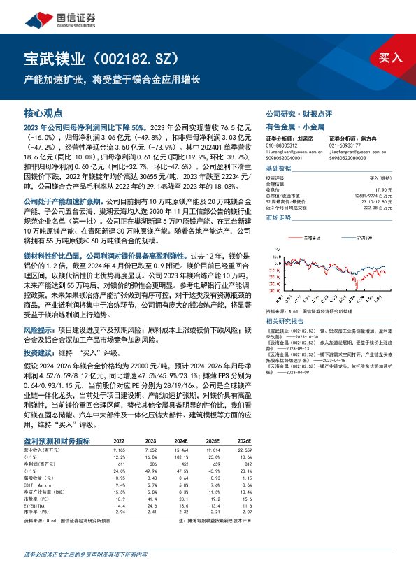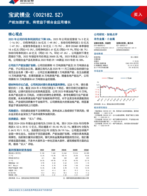 【国信证券】【20240514】宝武镁业(002182)产能加速扩张,将受益于镁合金应用增长-10页