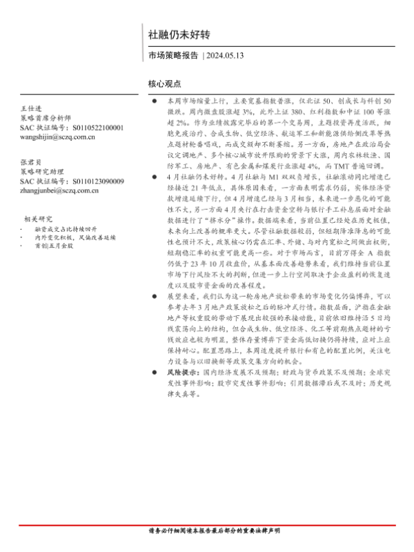 【首创证券】【20240513】市场策略报告:社融仍未好转-15页