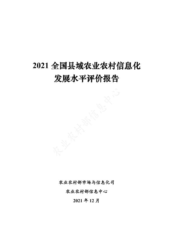 【农业农村部市场与信息化司】【202112】2021全国县域农业农村信息化发展水平评价报告-33页