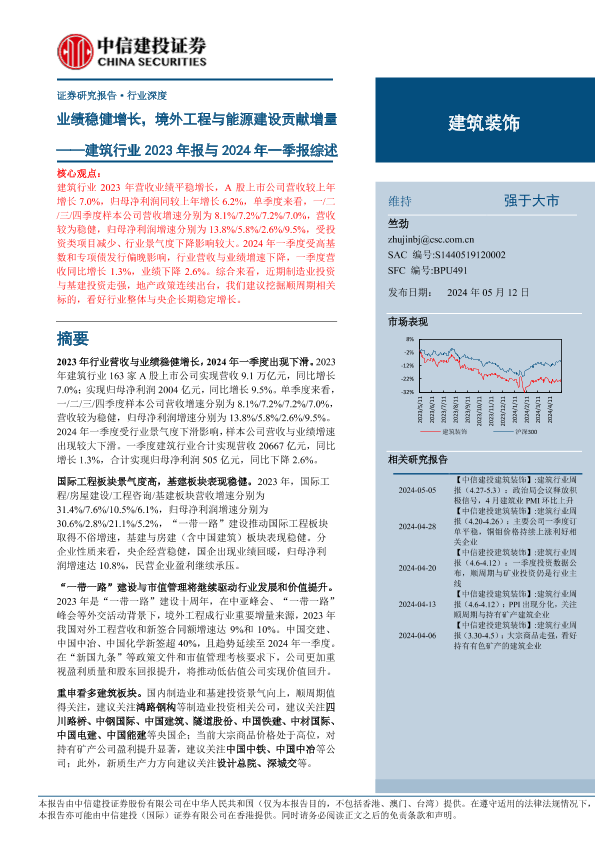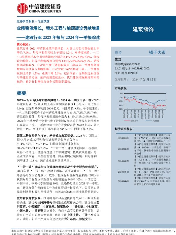 【中信建投证券】【20240512】建筑行业2023年报与2024年一季报综述:业绩稳健增长,境外工程与能源建设贡献增量-25页