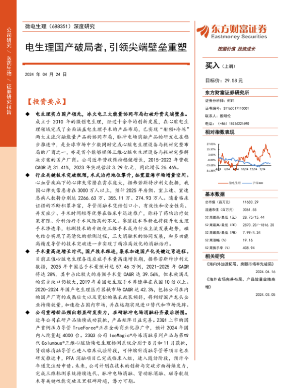 【东方财富证券】【20240424】微电生理-688351.SH-深度研究:电生理国产破局者,引领尖端壁垒重塑-38页
