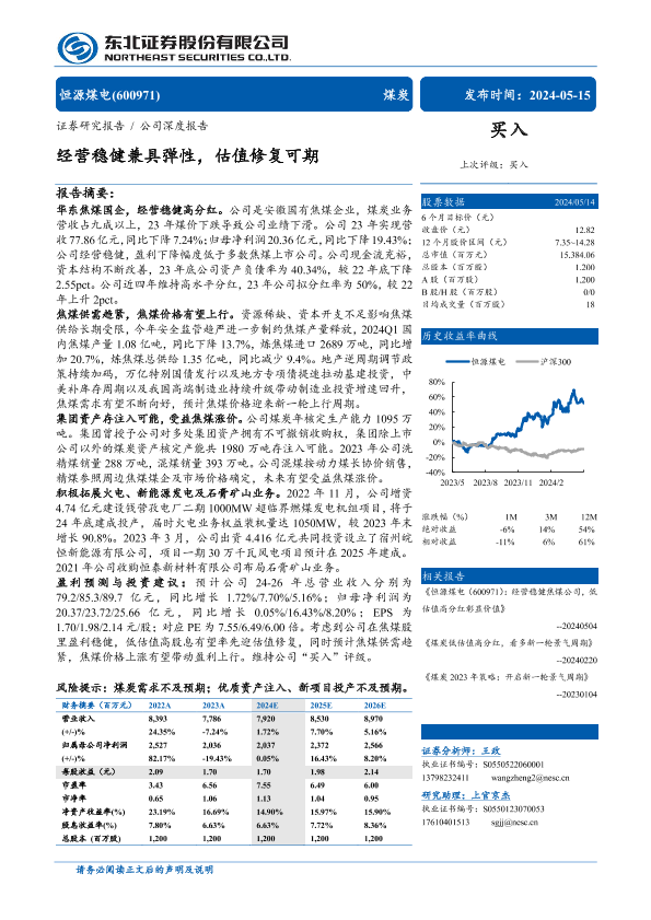 【东北证券】【20240515】恒源煤电(600971)经营稳健兼具弹性,估值修复可期-31页
