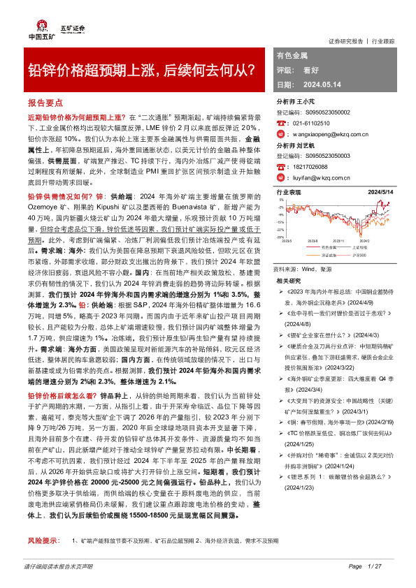 【五矿证券】【20240514】有色金属行业:铅锌价格超预期上涨,后续何去何从?-27页