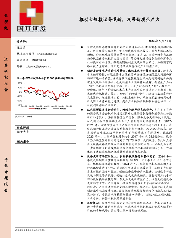 【国开证券】【20240511】机械设备行业研究:推动大规模设备更新,发展新质生产力-10页