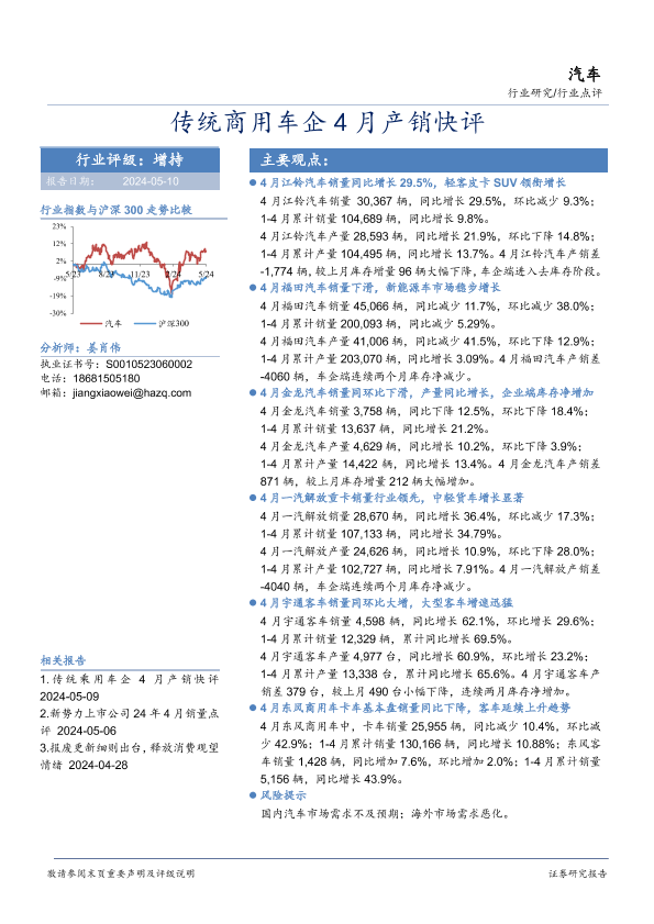 【华安证券】【20240510】传统商用车企4月产销快评-21页
