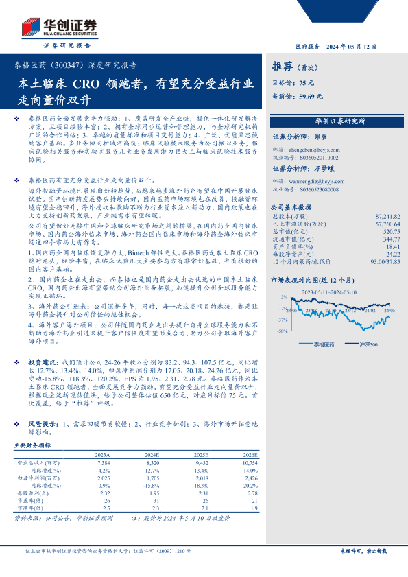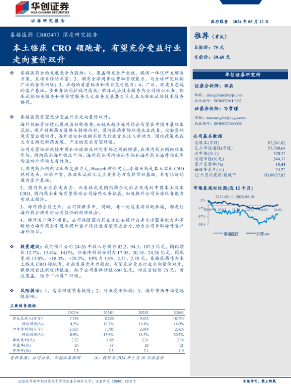 【华创证券】【20240512】泰格医药(300347)深度研究报告:本土临床CRO领跑者,有望充分受益行业走向量价双升-35页