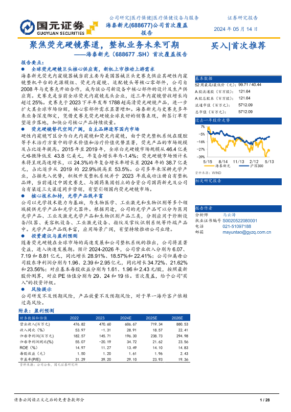 【国元证券】【20240514】聚焦荧光硬镜赛道,整机业务未来可期——海泰新光(688677.SH)首次覆盖报告-28页