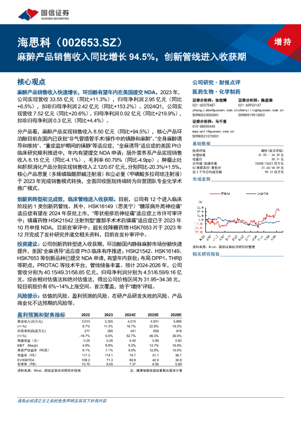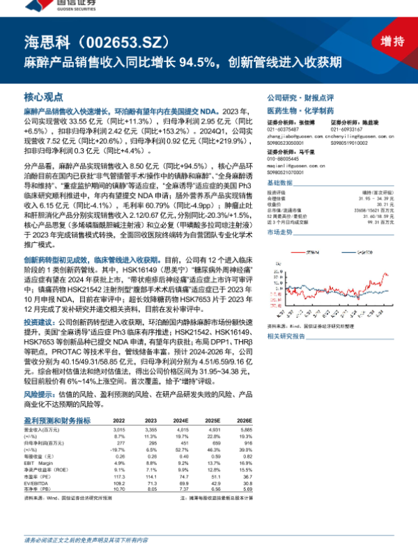 【国信证券】【20240515】海思科(002653)麻醉产品销售收入同比增长94.5%,创新管线进入收获期-15页
