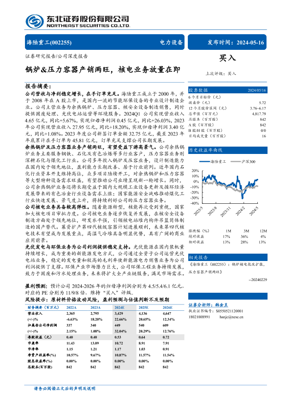 【东北证券】【20240516】海陆重工(002255)锅炉&压力容器产销两旺,核电业务放量在即-32页