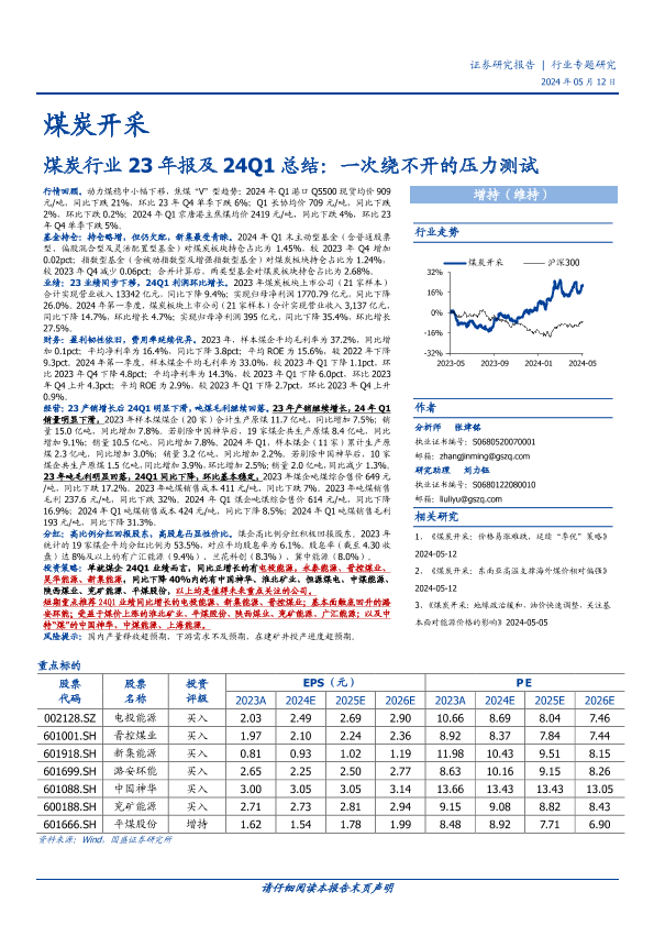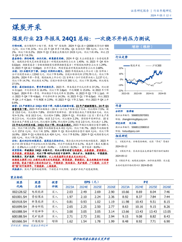 【国盛证券】【20240512】煤炭开采行业23年报及24Q1总结:一次绕不开的压力测试-22页