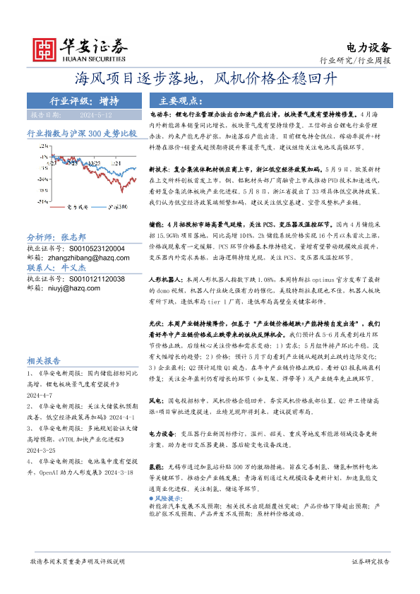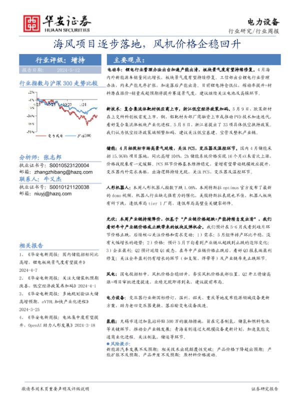【华安证券】【20240512】电力设备行业:海风项目逐步落地,风机价格企稳回升-24页