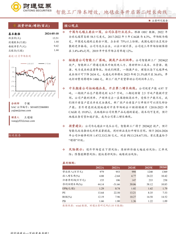 【财通证券】【20240510】真爱美家(003041)智能工厂降本增效,地毯业务开启第二增长曲线-26页