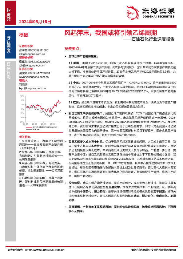 【东海证券】【20240516】风起萍末,我国或将引领乙烯周期——石油石化行业深度报告-27页