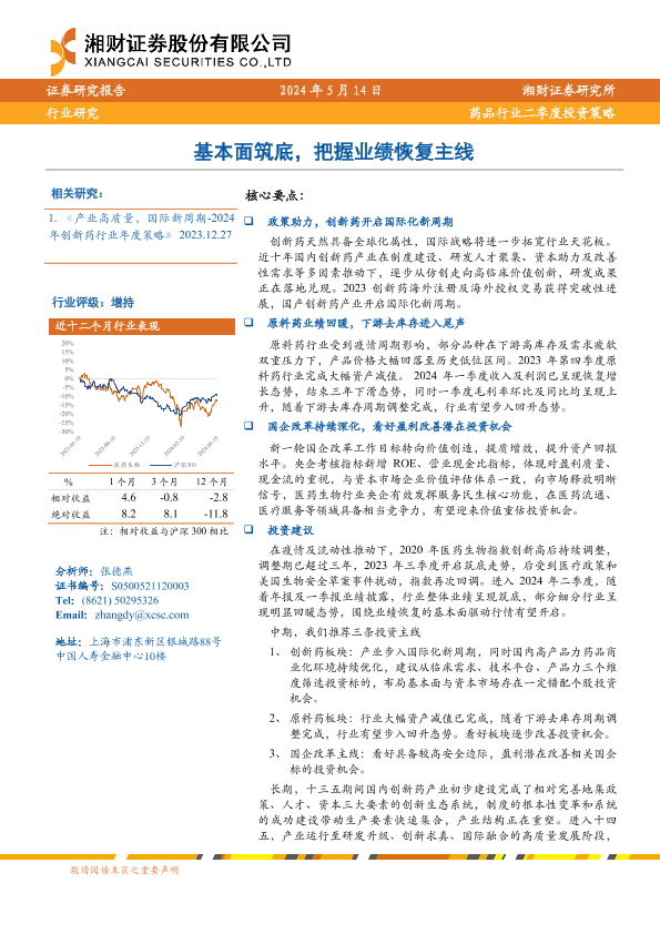【湘财证券】【20240514】药品行业二季度投资策略:基本面筑底,把握业绩恢复主线-23页