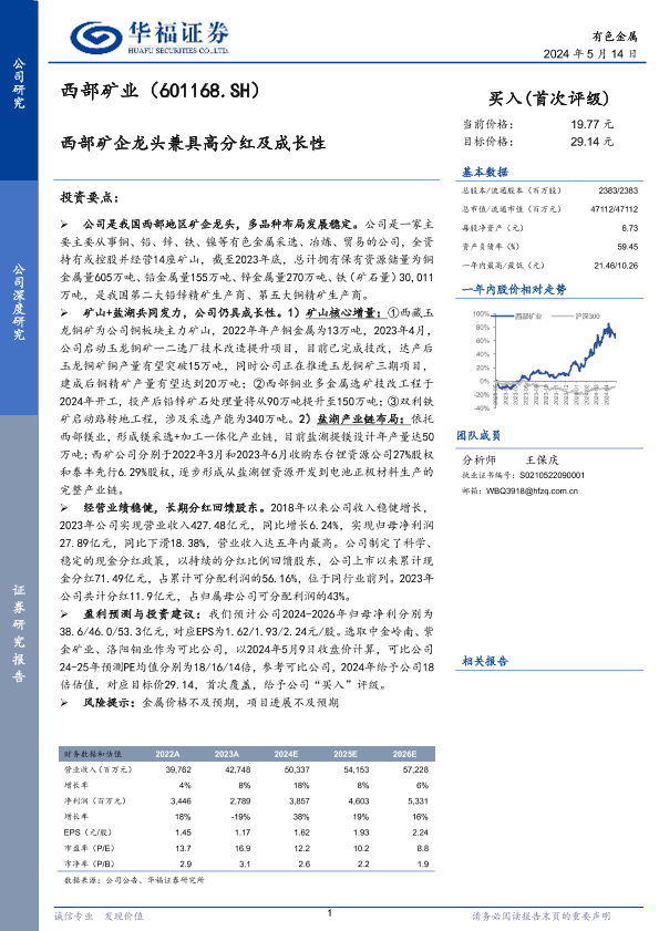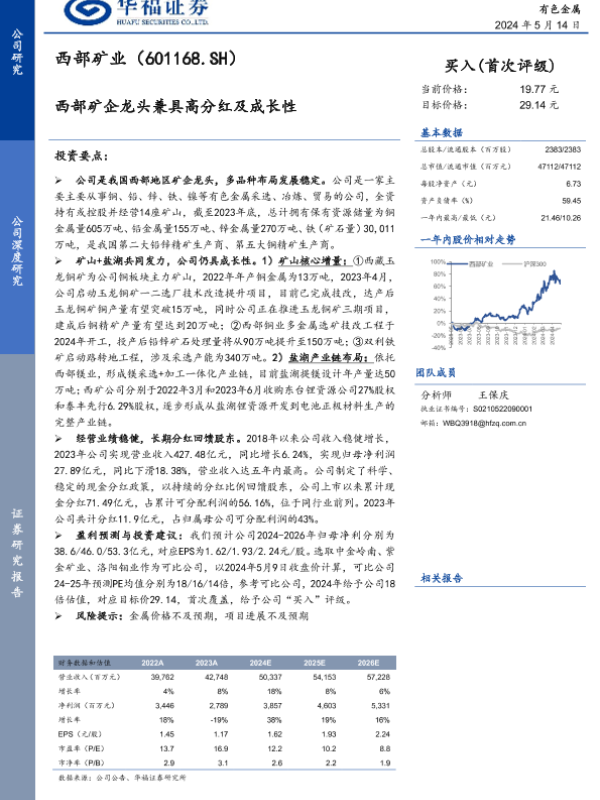 【华福证券】【20240514】西部矿业(601168)西部矿企龙头兼具高分红及成长性-29页