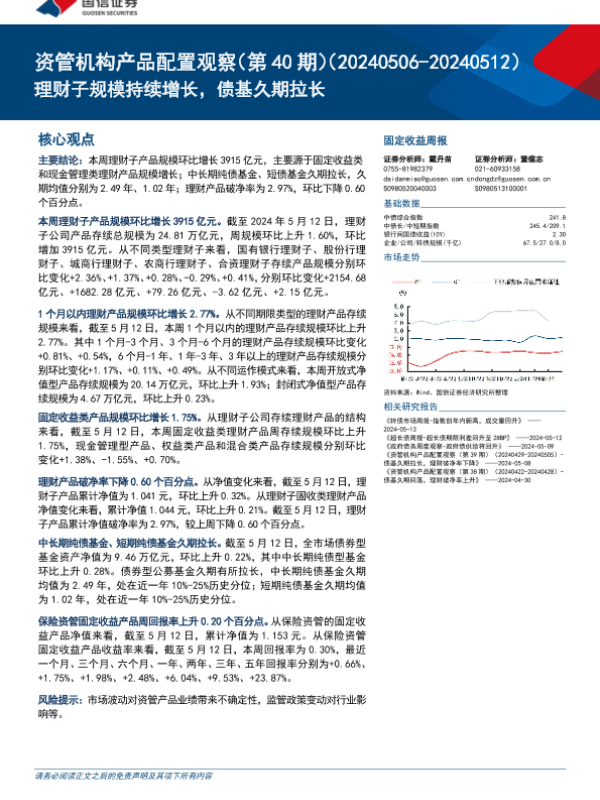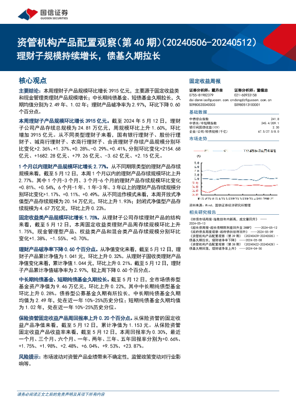 【国信证券】【20240515】资管机构产品配置观察(第40期):理财子规模持续增长,债基久期拉长-16页