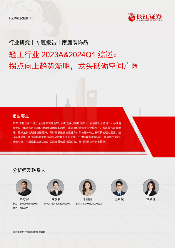 【长江证券】【20240516】轻工行业2023A&2024Q1综述:拐点向上趋势渐明,龙头砥砺空间广阔-44页