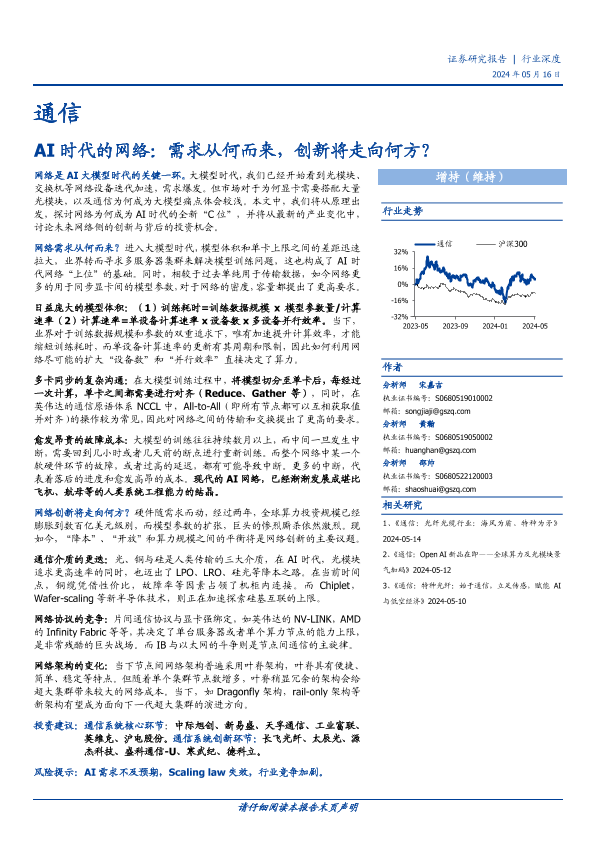 大模型训练 投资分析 网络架构 通信网络 AI时代