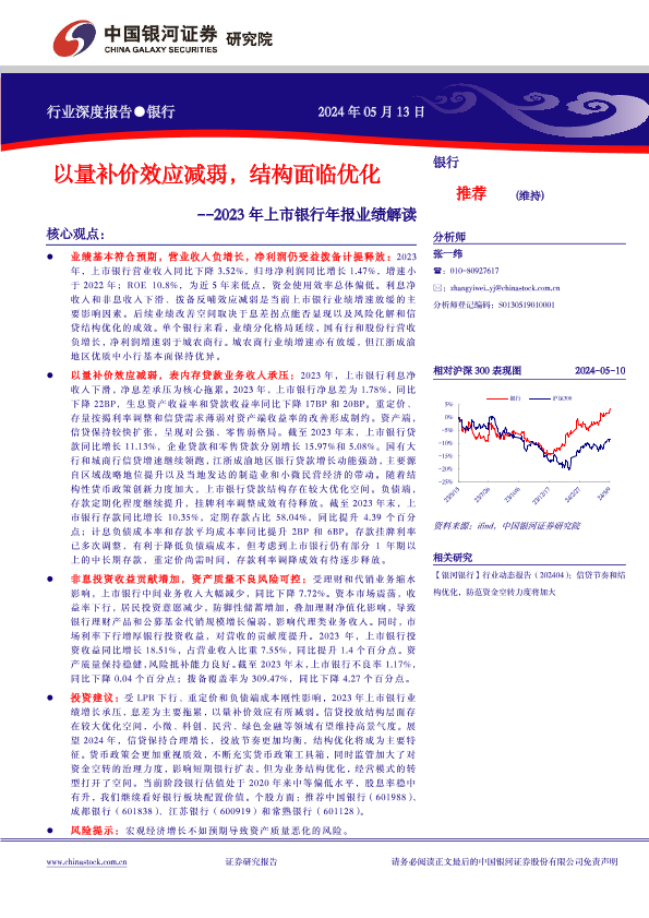 【银河证券】【20240513】银行业2023年上市银行年报业绩解读:以量补价效应减弱,结构面临优化-21页