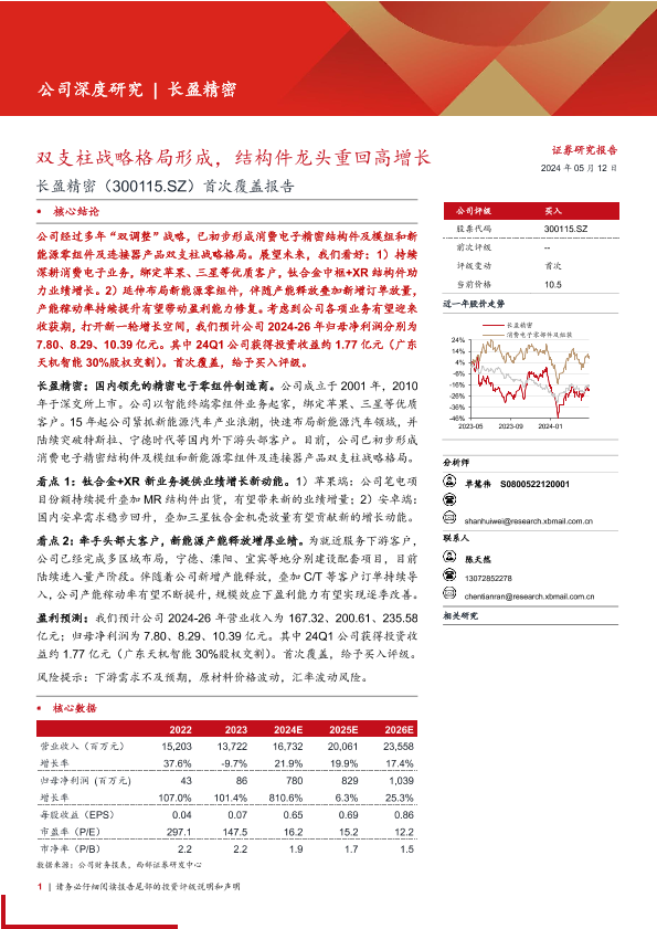 【西部证券】【20240512】长盈精密(300115)首次覆盖报告:双支柱战略格局形成,结构件龙头重回高增长-24页
