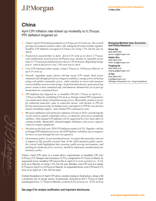 【J.P. Morgan】【20240512】中国4月CPI通胀率小幅上升至0.3%-12页