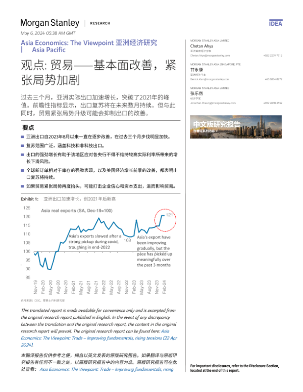 【Morgan Stanley】【20240422】亚洲经济研究 观点 贸易——基本面改善,紧张局势加剧-12页