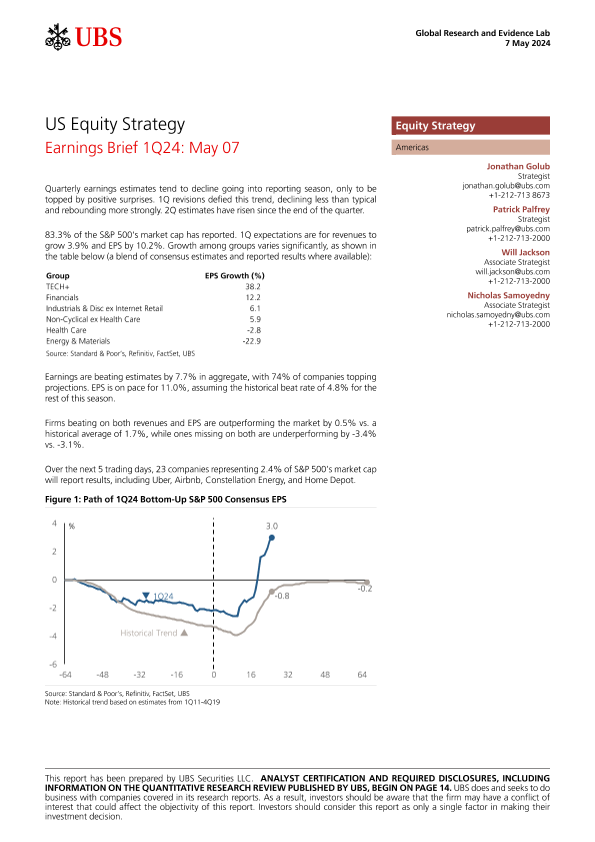【UBS Securities LLC】【20240507】US Equity Strategy _Earnings Brief 1Q24 May 07-18页