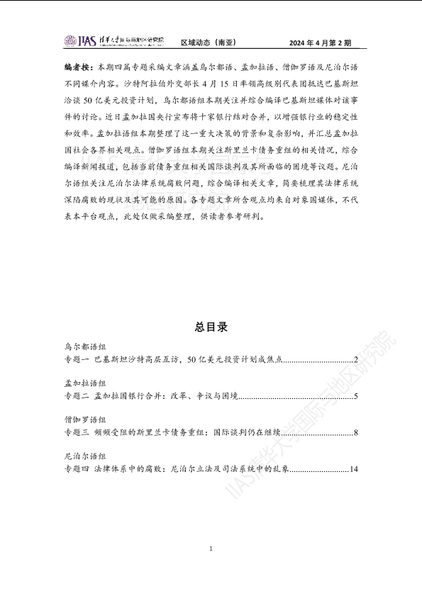 债务重组 法律腐败 经济合作 银行合并 南亚动态