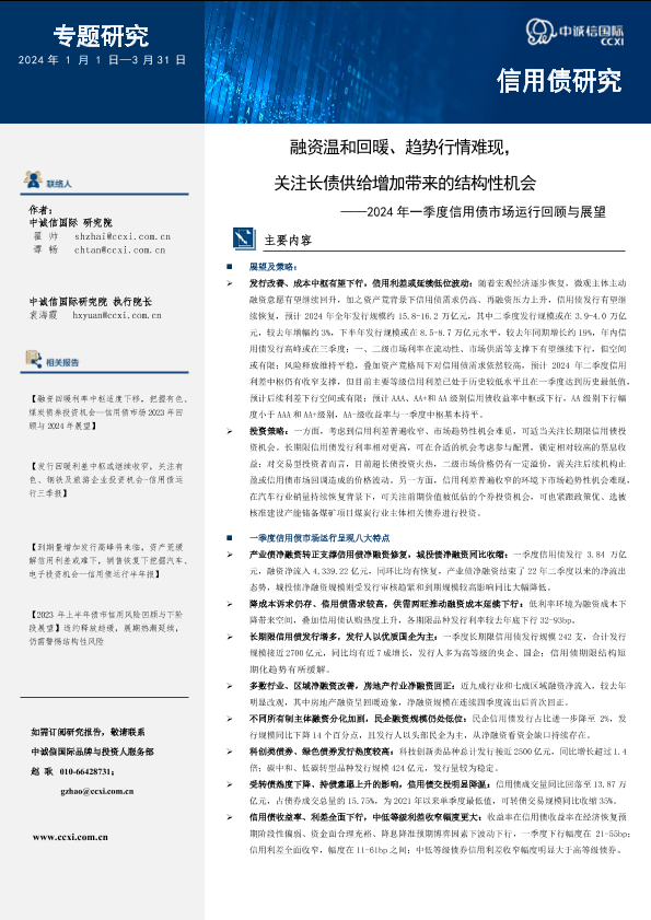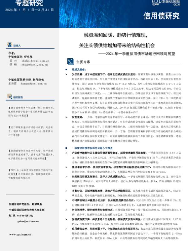 【中诚信国际】【20240101】融资温和回暖、趋势行情难现,关注长债供给增加带来的结构性机会-2024年一季度信用债市场运行回顾与展望-15页