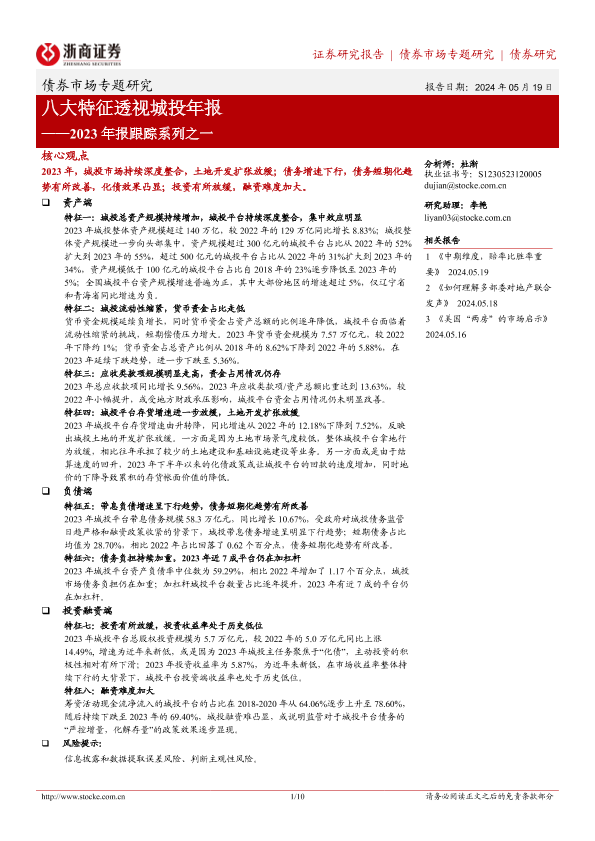 【浙商证券】【20240519】2023年报跟踪系列之一:八大特征透视城投年报-10页