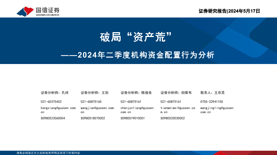 【国信证券】【20240517】2024年二季度机构资金配置行为分析:破局“资产荒”-47页