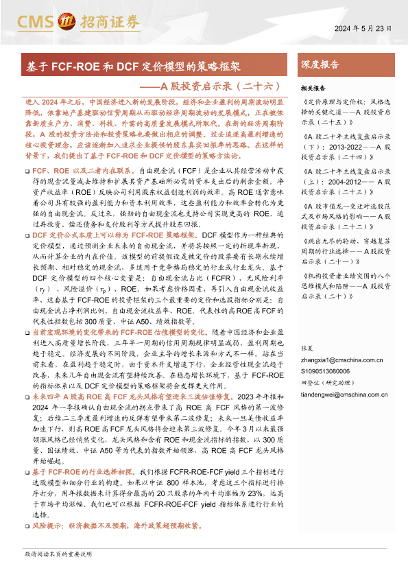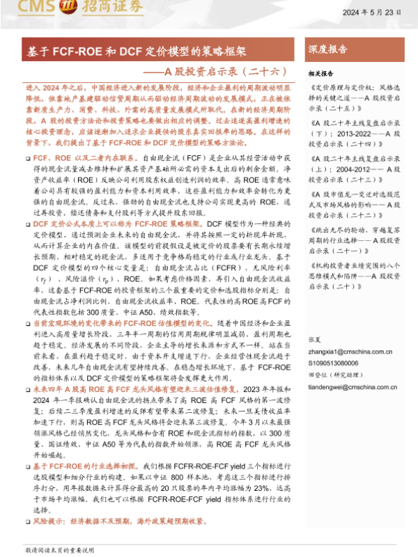 【海通证券】【20240523】A股投资启示录(二十六):基于FCF-ROE和DCF定价模型的策略框架-26页